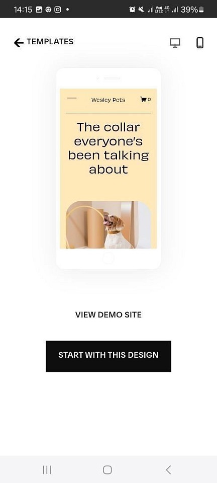 Der Einstieg scheint zunächst einfach zu sein, und der Vorgang vermittelt den Eindruck, dass Sie eine Website direkt vom Smartphone aus erstellen können. Das ist jedoch nicht der Fall. Sobald Sie eine Vorlage für Ihre Website ausgewählt und Ihr Konto erstellt haben, werden Sie zur App weitergeleitet (siehe unten).