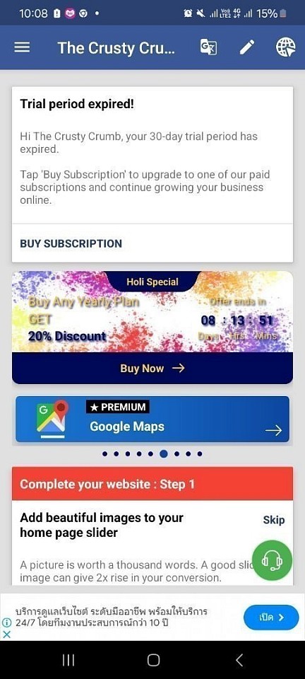 Die App „Instant Website Builder“ ist nicht völlig kostenlos. Sie wird mit einer 30-tägigen kostenlosen Testversion geliefert, was zum Zeitpunkt der Installation nicht klar war.