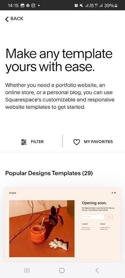 Squarespace es una aplicación muy conocida que lleva años en el mercado. Tenía grandes expectativas, principalmente por su reputación y por los cientos de reseñas positivas.