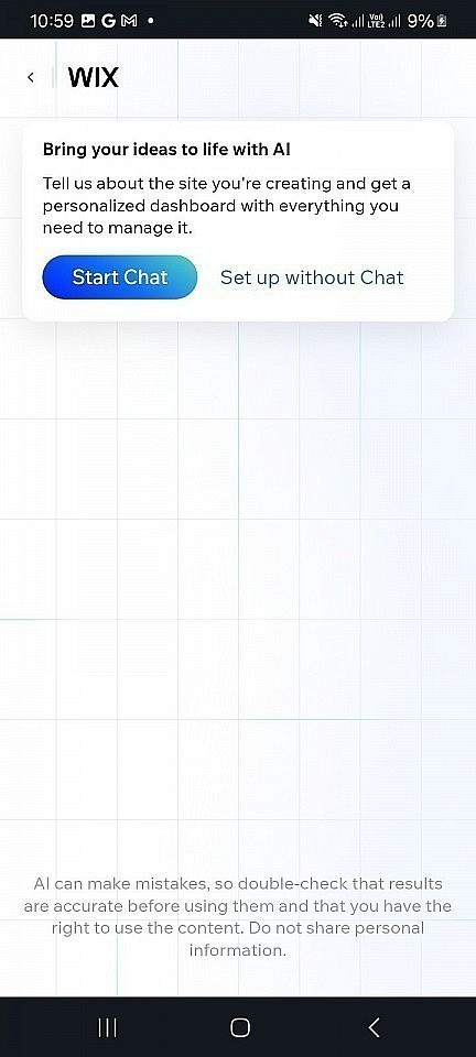 El proceso de incorporación de Wix sugiere personalización con la IA, pero esta funcionalidad no se extiende a la creación de sitios web dentro de la app. Quienes esperen un auténtico asistente de diseño con IA se sentirán decepcionados.