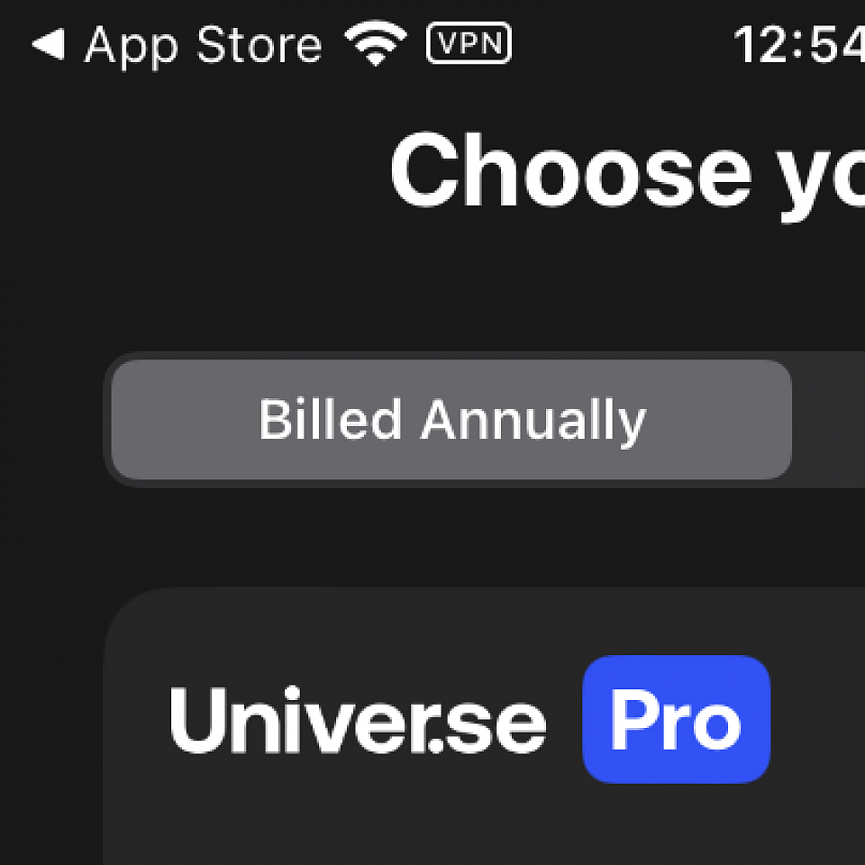 Lors de la découverte initiale de l'app Universe, j'ai été interrompu par une offre commerciale intrusive me proposant des mises à niveau vers les versions payantes. Heureusement, j'ai réussi à passer outre et à accéder à la version gratuite de l'app.