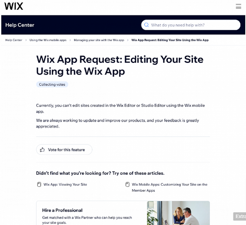 आधिकारिक Wix सपोर्ट भी पुष्टि करता है कि Wix ऐप पूरी वेबसाइट बनाने की अनुमति नहीं देता।