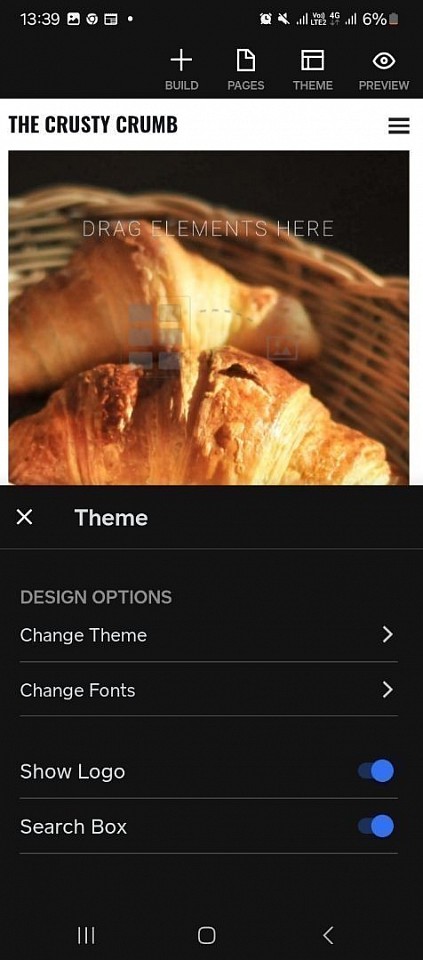 テキスト、画像、ボタン、ギャラリースライドショーなどの充実した基本機能を提供しているが、お問い合わせフォームを追加する機能はない。この機能は後にパソコンのブラウザ版で利用できることを知った。すべての要素は「ビルド」セクションにきちんと分類されておりタップするだけで簡単に追加できる。